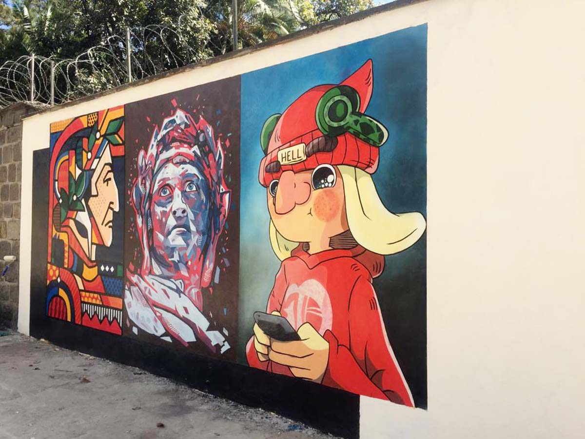Chi mi conosce sa quanto per me sia importante viaggiare; ma questa volta è stato un viaggio strano, perchè nonostante non mi sia mosso, una parte di me è arrivata in Etiopia. Mi sembra ancora assurdo, ma grazie a Bonobolabo e all’Istituto Italiano di Cultura di Addis Abeba, il mio Young Dante è su un muro ad Addis Abeba! Ed è pure in ottima compagnia insieme ai mitici Van Orton e al super Alessandro Pautasso aka kaneda.