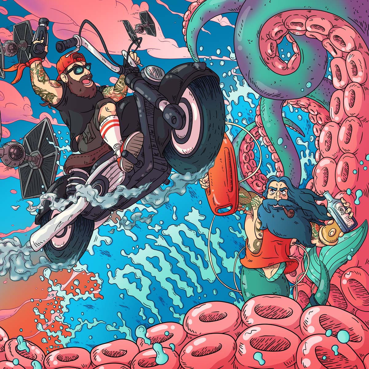 L’obiettivo era rappresentare ogni membro della band attraverso le proprie passioni, i propri affetti e le proprie attitudini. Così Andrea Neri (voce) sfreccia sulla sua moto, scappando dai TIE fighters (Star Wars); Teo Rossi (chitarra) festeggia con la figlia e gli animaletti di casa; Franco Giacometti (basso) e Riccardo Tasselli (chitarra) sono con la testa fra le nuvole, cavalcando il buon Isaac fra cuori spezzati; Davide Pazzaglia (batteria), bagnino di salvataggio, è il re dei mari.