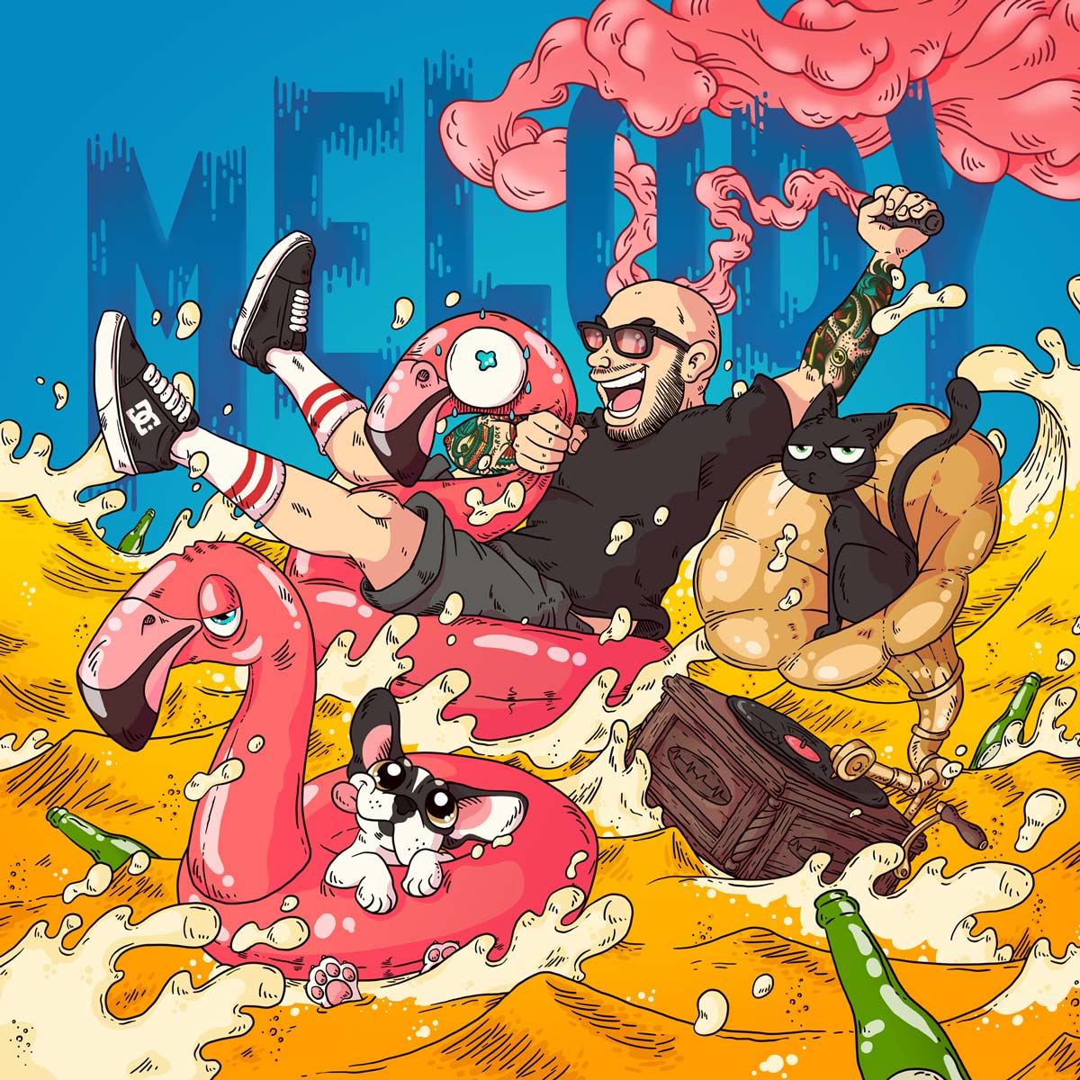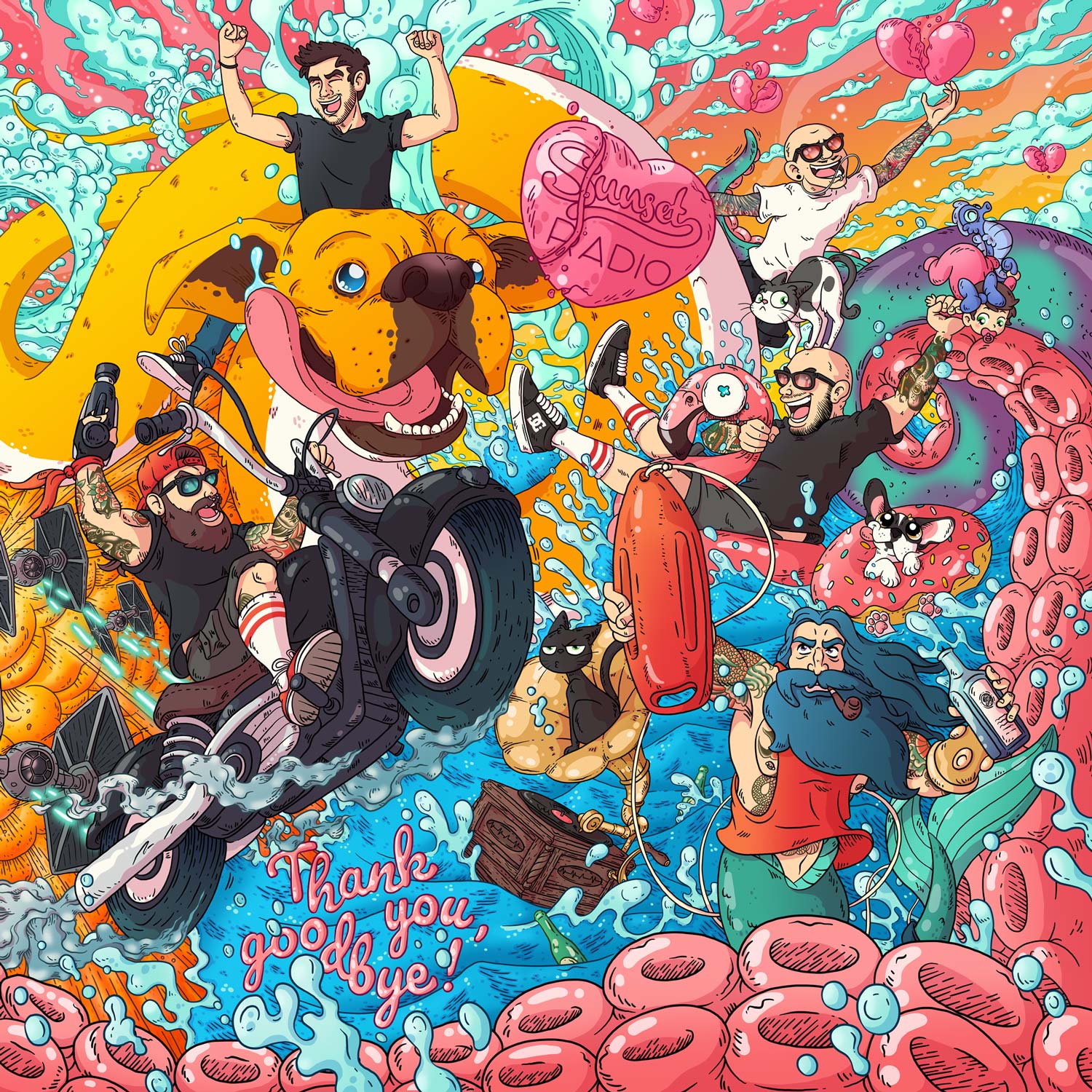 A novembre 2022 è uscito “Thank You, Goodbye”, il terzo disco della pop-punk band romagnola Sunset Radio. I ragazzi mi hanno chiesto di realizzare la cover album e le cover dei vari singoli che sarebbero usciti: “Melody”, “Pride” e “Ghosts & Cigarettes”.